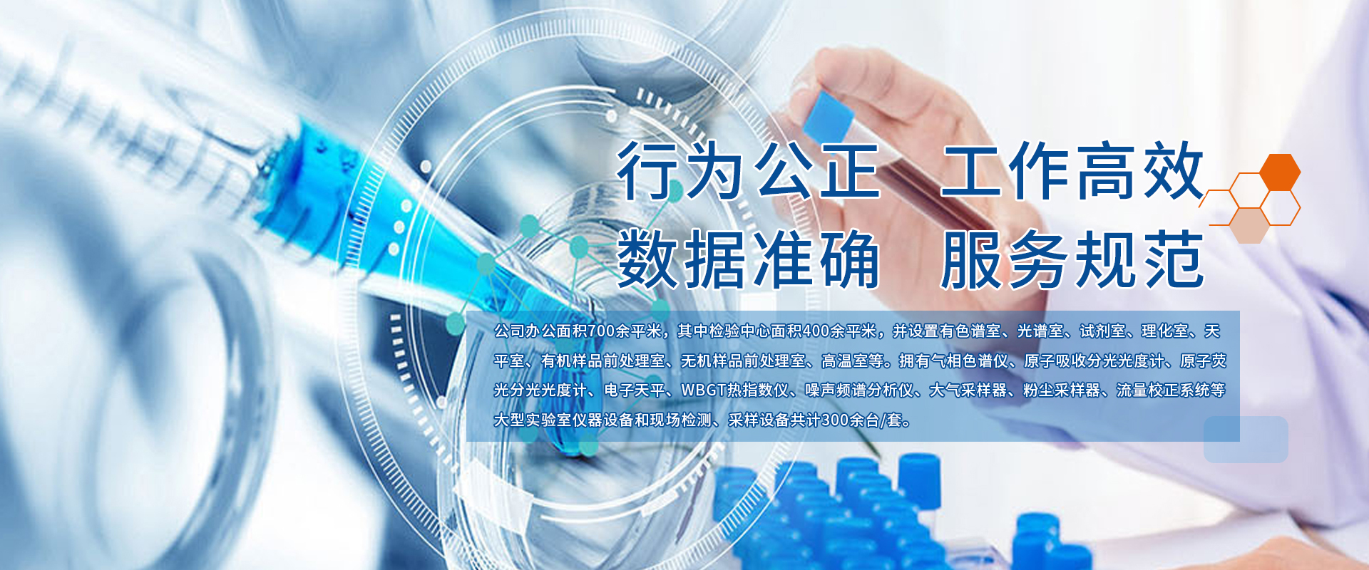 公司辦公面積700余平米,其中檢驗中心面積400余平米,并設有色譜室、光譜室、試劑室、理化室、天平室、有機樣品前處理室、無機樣品前處理室、高溫室等。擁有氣相色譜儀、原子吸收分光光度計、原子熒光分光光度計、電子天平、WBGT熱指數儀、噪聲頻譜分析儀、大氣采樣器、粉塵采樣器、流量校正系統等實驗室儀器設備和現場檢測、采樣設備共計300余臺/套。